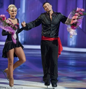When he saw how upset she was Vanilla Ice skated over and gave his flowers to Grace.